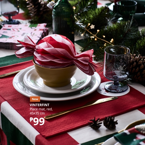 The VINTERFINT kitchen is all about holiday fun and cooking for and with the family. Products such as cookie cutters and festive molds, cheerful coasters, disposable napkins, and serving pieces give the table the warmth that matches your anticipation for the shared laughter, stories, and meals that define the Filipino Christmas.
