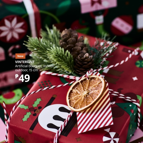 “Our IKEA Christmas Shop brings together design, affordability, and sustainability in one place. Every piece is festive and joyful for the home while being kinder to the planet,” says Ricardo Pinheiro, IKEA Philippines Country Retail Manager. “You’ll see this in our VINTERFINT jolly Santa Claus figures for your tabletop, made from 100% recycled polyester, and priced from only ₱129. To decorate your hallways and tables, we have artificial wreaths, hanging bouquets and potted plants, also crafted from recycled polyester and combined with recycled PET and polyethylene plastic, starting at just ₱49. Shoppers can mix and match small accents with bigger pieces like our artificial Christmas trees.”