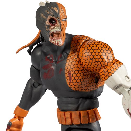 Based on the popular DC Comics 2019 miniseries, DCeased, Deathstroke has been transformed into a zombie-like creature. The horrifying Slade Wilson is showcased with a monstrous, mutilated face. This DC Essentials DCeased Unkillables Deathstroke Action Figure features 19 points of articulation and measures approximately 7-inches tall.