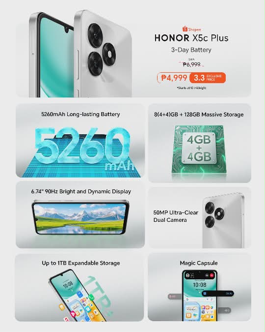 “We’re excited to introduce the HONOR X5c Plus to the Philippine market — a smartphone that brings exceptional battery life, reliable performance, and value-for-money features to everyday users. And we are as proud to partner with Shopee Philippines in bringing this new phone closer to our customers nationwide,” said HONOR Philippines Vice President Stephen Cheng.