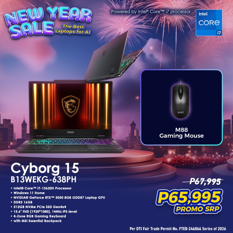 The MSI Cyborg 15 is offered at a promo price of ₱65,995, giving you a budget-friendly way to upgrade your setup without compromise.