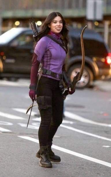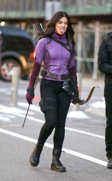 Check out more of Hailee Steinfeld as Kate Bishop in costume below: