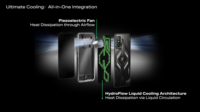 Integrating the HydroFlow Liquid Cooling Architecture with the Piezoelectric Fan, Infinix delivers an all-in-one integrated system that combines liquid and active air cooling to provide more stable performance and a cooler tactile experience. Looking ahead, Infinix continues to explore next-generation cooling solutions, including a Full-Chamber Immersive Cooling solution, where liquid directly contacts key components for rapid heat dissipation, highlighting its ambition to push cooling technology further for extreme performance.
