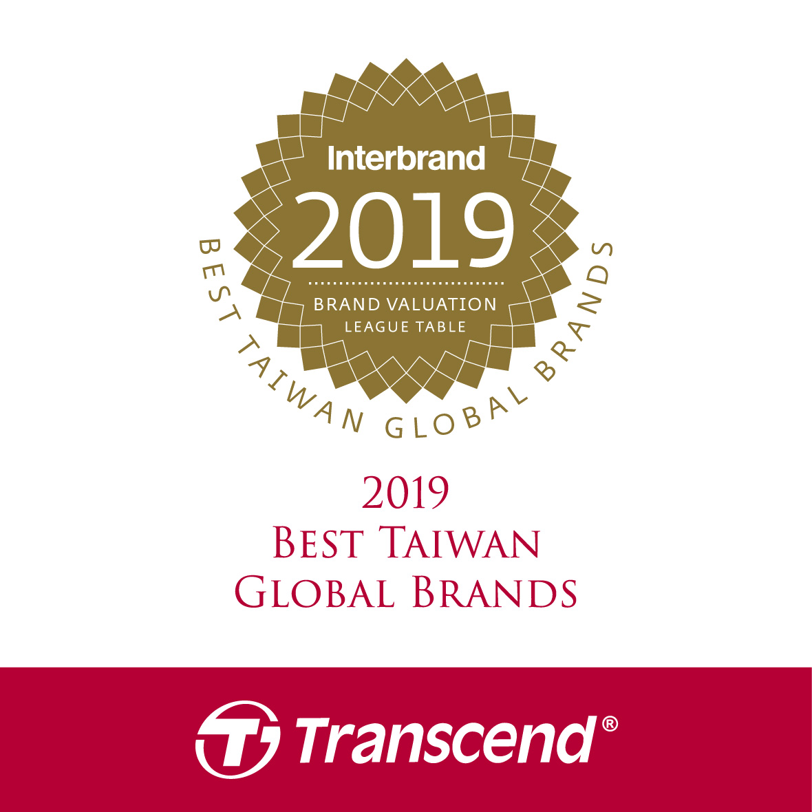 Taiwan’s top 20 brand names for 2019 were announced today by the global branding consultancy Interbrand. For the 13th year in a row, Transcend Information is featured on the list as one of Taiwan’s top 20 brands, which showcases Transcend’s competence and stamina in a highly competitive international market.